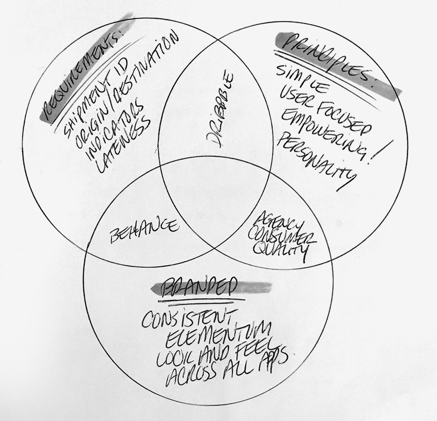 I capture requirements for each project with stated goals for the stakeholders and for myself. I also write down the clients' design principles (if they have them) and keep this sketch in front of me at all times.